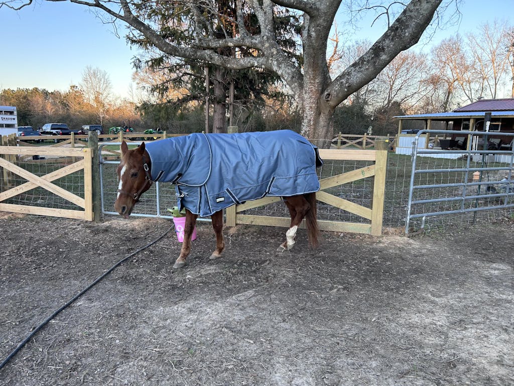 Además, la solapa de cola integrada agrega otra capa de cobertura y protección, evitando que la humedad llegue a los cuartos traseros de su caballo.