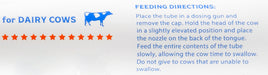 Place the tube in a dosing gun and remove the cap. Hold the head of the cow in a slightly elevated position and place the nozzle on the back of the tongue. Feed the entire contents of the tube slowly, allowing the cow time to swallow. Do not give to cows that are unable to swallow.